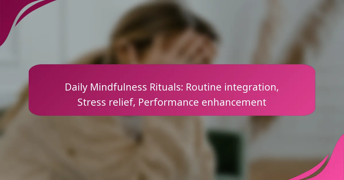 Daily mindfulness rituals are intentional practices designed to cultivate awareness and presence, significantly enhancing mental clarity and reducing stress. By integrating these rituals into your rou...